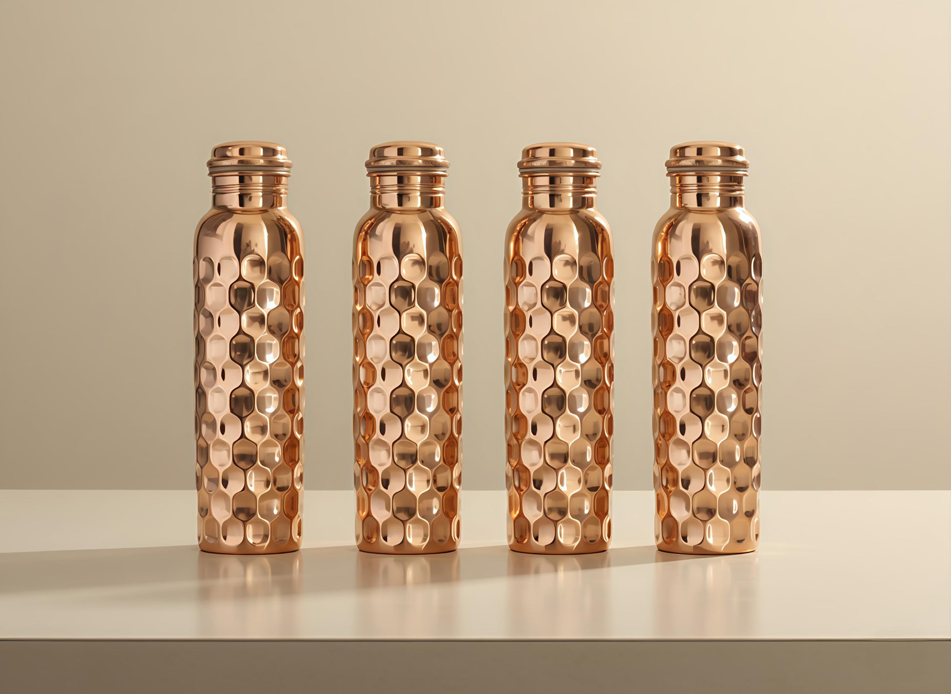 This pack of 4 Copper Diamond Water Bottles is the perfect hydration solution for those who appreciate both style and functionality. Made with pure copper, these bottles not only look stunning but also provide the added benefits of natural antimicrobial properties and improved water quality. Stay hydrated and healthy with these beautiful bottles.
