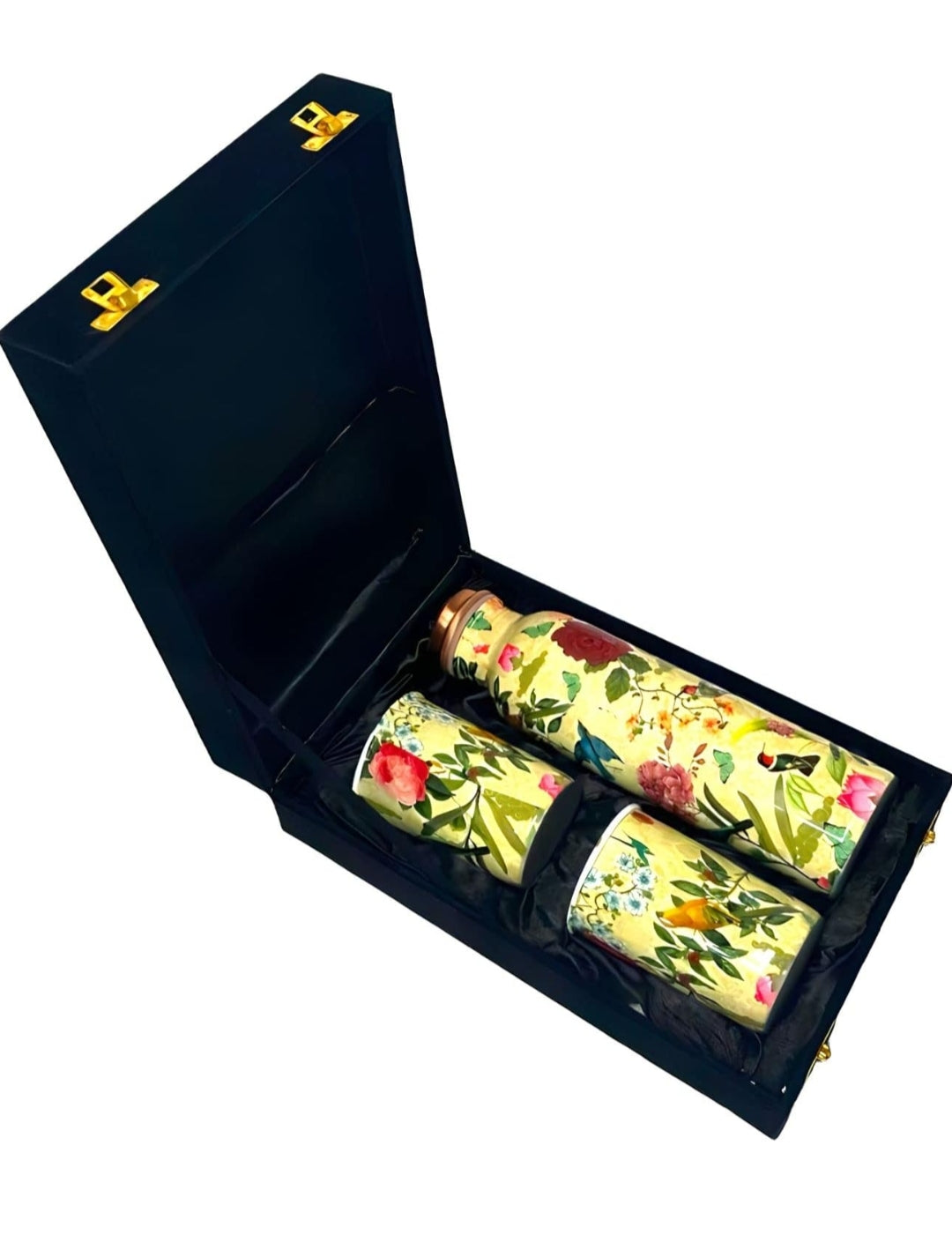 Meena Printed Bottle water bottle 1 bottle 2 glasses with black gift box