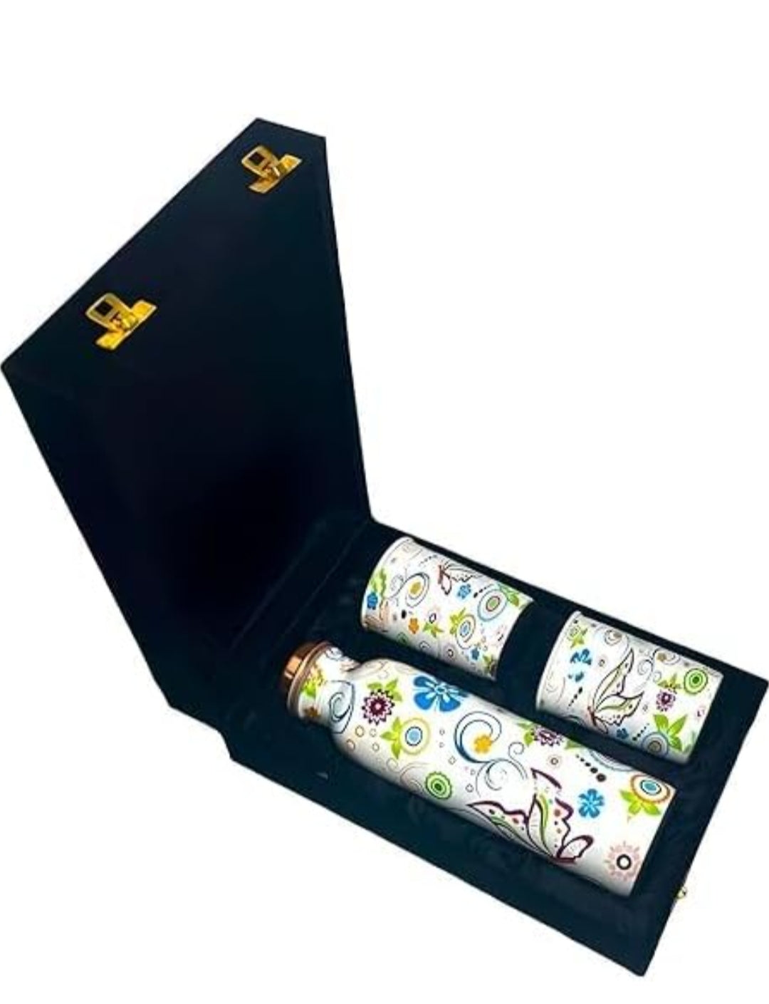 Meena printed copper water bottle gift set 1 bottle 2 glasses with velvet gift box 🎁